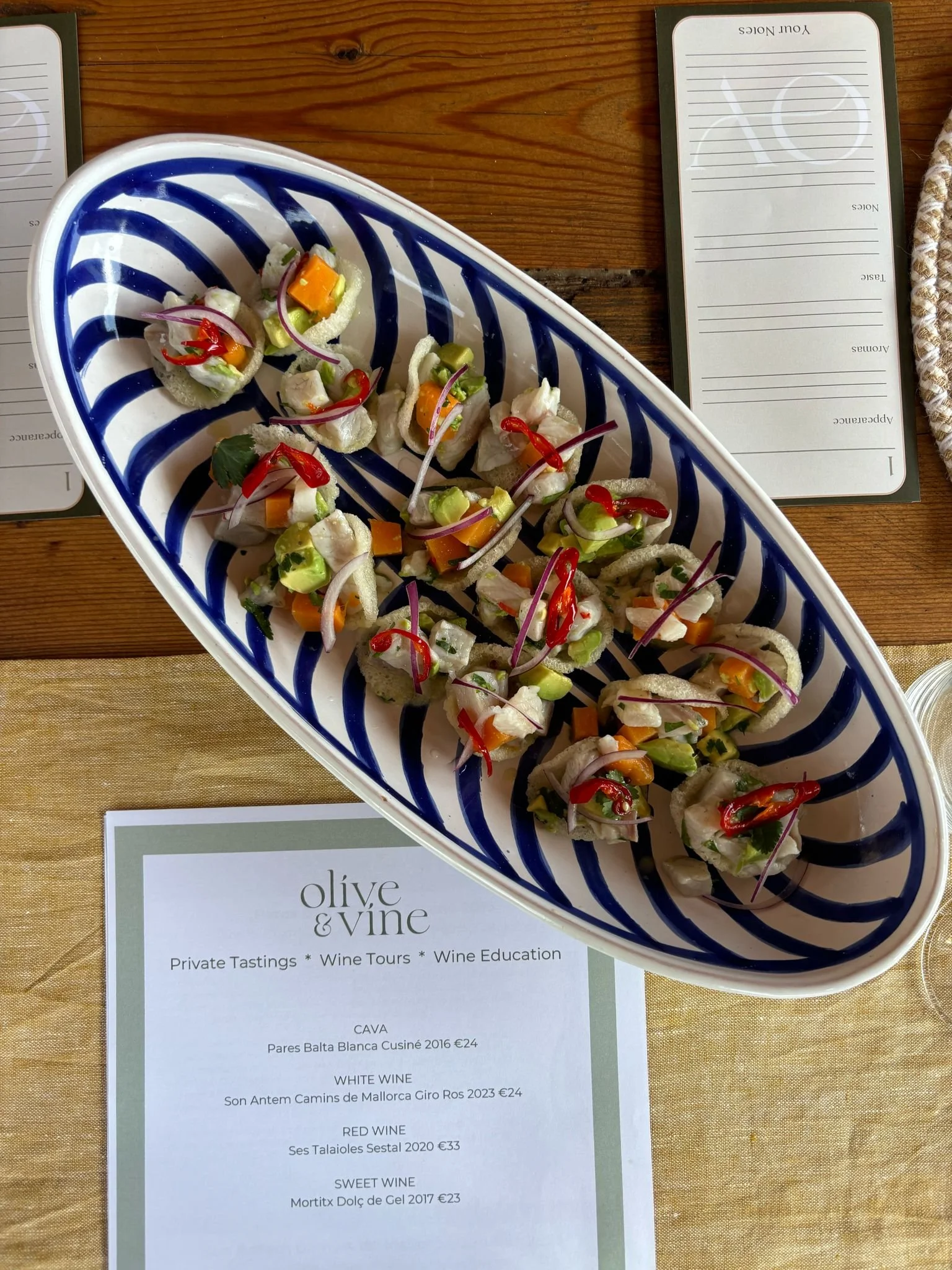 The final price is determined by the number of wines selected, their price point, and any food options chosen, with no travel fee for locations within a 30-minute drive of Palma. Regardless of budget, every wine we pour is thoughtfully chosen — always wines we genuinely love and enjoy drinking ourselves. Get in touch for a no-obligation quotation.